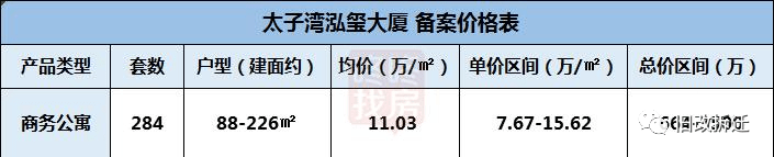 预售单价区间约为7.67-15.62万/㎡;总价区间约为664-3500万元。