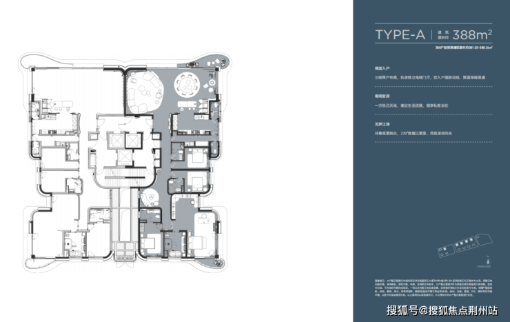 拥有超16米景观面宽,搭配8米以上巨幕横厅和飘带般向外延伸的弧形阳台,甚至跨级超越了传统388㎡户型的观景尺度,在滨江众多200-300㎡产品中,可以说没有对手.