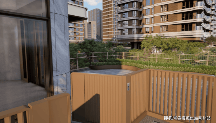 廊桥立面采用与商业街同样的设计语言.增强庭院的围合感,让贝尔高林设计的社区七大主题花园与滨江生态无缝衔接.