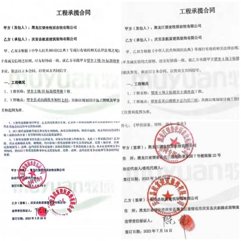 关于拖欠工程款的原因,该负责人给出了两个解释:一是公司内部负责核算的工作人员因生育休假,导致相关工作被耽搁了较长时间;二是公司确实存在“超付”的情况。据其说明,望奎牧原在向另一支同样挂靠“庆安县航富建筑装饰有限公司”的施工队支付工程款时,因财务操作失误,多支付了30多万元。