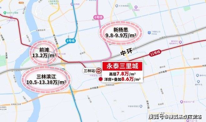 事实上,三林滨江在空间上与前滩更为贴近,但永泰三里城在时间距离上更占优势。