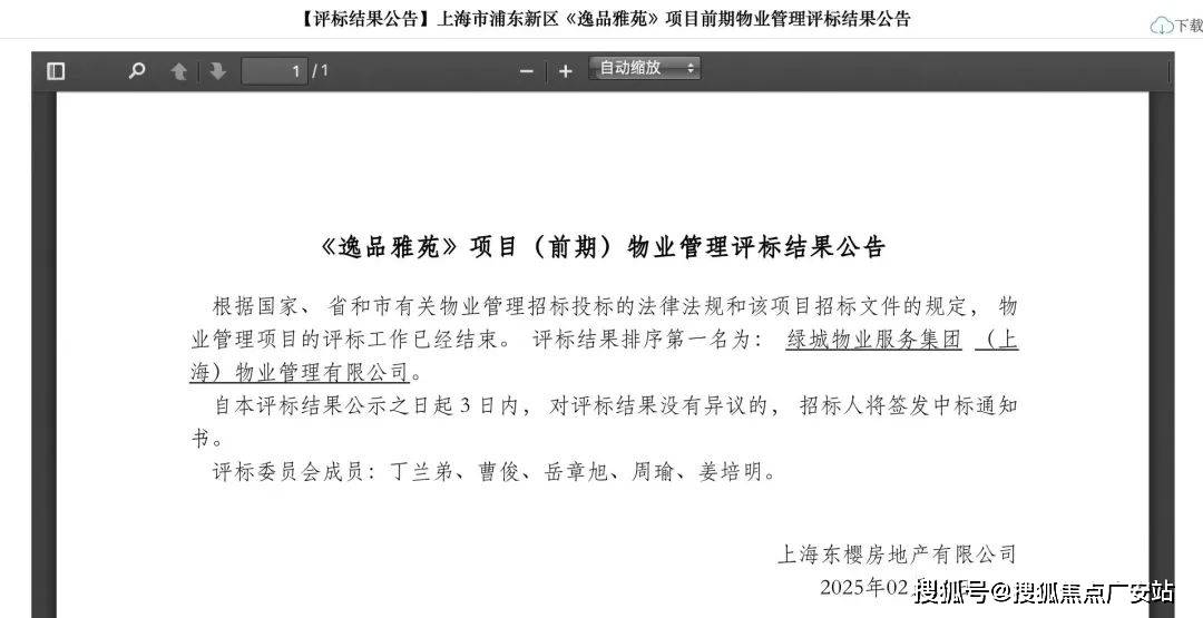 2025年2月绿城物业服务集团(上海)物业管理有限公司中标滨江一品苑前期物业项目,正式成为滨江一品苑物业。